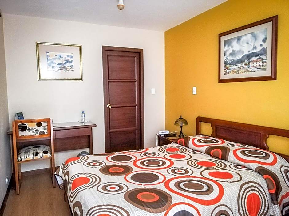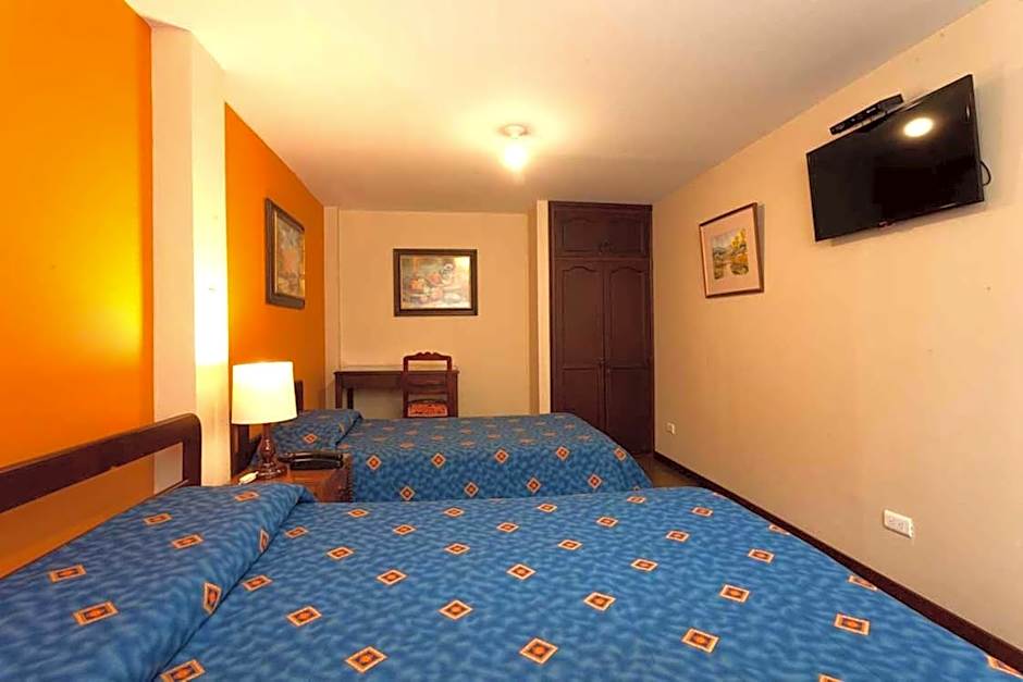 Spacious twin room decorated with water color paintings and equipped with 1 double bed and 1 single bed, a desk, a TV with satellite channels, free WiFi and eco-friendly toilets which recycle rain water.